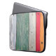 Tintas laranja, vermelha e verde desbotadas e descascadas em madeira de penas.