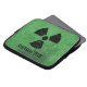 Aviso de Radiação! Esta bolsa de laptop personalizável apresenta o símbolo internacional de uma substância radioativa. O trefoil de radiação aparece no estilo de resmungo, vestido. A cor padrão é verde, mas você pode escolher qualquer cor que quiser selecionando uma cor de fundo na seção personalização! A legenda "Radioativo" pode até ser mudada para outra mensagem, ou talvez um nome! Reprojete esta manga para torná-la exclusivamente sua!