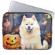 Capa Para Notebook Halloween American Akita Com Pumpkins Assustado