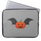 Uma ilustração de um bonitinho desenho animado morcego de abóbora laranja de halloween com asas pretas. Esta design de criatura mágica é uma ideia de presente para amantes mágicos ou feitiços e amantes do trick.