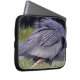 O herão azul-excelente, na fotografia original de MaeFlowers nesta Bolsa de laptop de 10", está enfiando suas penas enquanto caminha em direção a outra éon, um invasor em seu território. A foto é um perfil mais próximo do corpo da ave selvagem, mostrando a longa e fina ascensão de plumagem no topo, e as penas mais largas por baixo. O corpo da erva é uma cor de cinza macia e azulada, com o azul saindo à luz do sol. Há penas pretas na curva da asa, com um toque de castanho avermelhado e branco. O fundo é a grama selvagem na borda da água, com um reflexo ondulado na água.