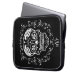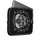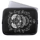 Proteja o seu laptop com uma manga de açúcar no crânio de hipster de tendências. Um crânio açucarado com várias flores e rosas, com um design legal urbano funk, com espirais de ornamentado e padrões de textura antigos. Um quadro de vinha cerca o crânio. Textura falsa de burlap. Celebre o Dia dos Mortos ou o Dia de los Muertos no México com este esqueleto único calavera. Perfeito para festas e comemorações. Clique em Personalizar para adicionar um monograma ou nome, alterar cor ou fonte— e crie o seu único design! Por Marisu Valencia™.
