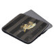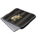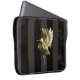 Steampunk, antigo, ouro, beija-flor mecânica com engrenagens de latão e chave prateada em fundo castanho listrado. Pássaro Dourado.