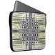 Arte fractal abstrato simétrica que me lembra ilusões óticas. Esta legal bolsa de laptop neoprena apresenta círculos e ondas em branco, azul e caqui.