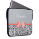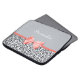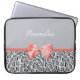 Um impressão animal na moda a bolsa de laptop de 15 polegadas com um teste padrão cinzento feminino do jaguar embellished com uma fita coral bonito amarrada em um arco. Personalize esta caixa do desenhista das mulheres adicionando seu nome. Imagem impressa do plano, fita nao real.