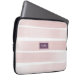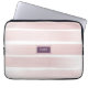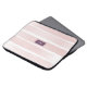 Listras cor-de-água cor-de-rosa-pinceladas que se parecem pintadas em um estojo de laptop neoprene com iniciais monográficas personalizadas no meio de um quadrado roxo de ameixa com uma borda geométrica extra. A cor das caixas e da fonte pode ser alterada com o editor de design avançado clicando em 'personalizar mais' acima.