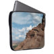 Esta vista de e através do arco da janela norte foi tirada no Parque Nacional de Arches perto de Moab, Utah. A rocha que forma a parte inferior direita do arco enche quase metade do quadro na diagonal. À esquerda, as nuvens brancas puffy dominam o céu azul que preenche a parte superior da foto. Uma faixa de cheio desértico de escova verde e formações rochosas distantes ocupa o canto inferior esquerdo da imagem. 35 mm, fotografia a cores. Copyright © 2004 Claire E. Skinner. Todos os direitos reservados.