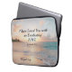 Escritura de citação inspiradora, bolsa de laptop personalizada, retrata um lindo pôr do sol do oceano com ondas azuis em uma praia arenosa. Apresenta uma Bíblia encorajadora Verse Jeremiah 31:3, "Eu te amei com um amor eterno." Personalize com um nome ou detalhes da sua escolha. Foto de Sean Oulashin.