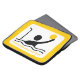 Capinha de laptop com silhueta preta personalizada de jogador de pólo aquático com um ícone pictográfico minimalista de uma silhueta preta de um jogador de pólo aquático segurando a bola na frente do gol e seu texto em fundo branco com borda amarela. Veja muitos designs em nossa loja de Presentes Esportivos.