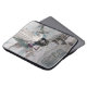Um postal de Natal francês vintage do dominio público. Ele apresenta uma garota vestida de presentes de carregando anjo de Natal.