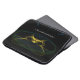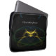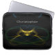Cabeça de alienígena flutuando no espaço negro. O objeto principal se parece com uma cabeça com olhos grandes e orelhas em amarelo. As espirais verdes rodeiam a "cabeça". Personalize com o nome no texto branco acima.