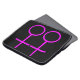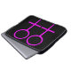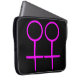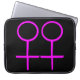 Esta bolsa de laptop incrível foi projetada para lésbicas. Ele apresenta dois símbolos femininos cor-de-rosa, lado a lado. O fundo é preto.