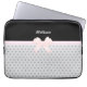 Preto elegante com fita cor-de-rosa e Bolsa de laptop de diamantes prateados. Nome pronto para ser personalizado.