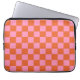 Arte digital abstrato de quadrados laranja e rosa em uma formação controlada.