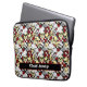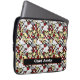 Mala de laptop legal impressa com um padrão desenhado à mão de crânios de esqueleto vestindo chapéus brancos de chef, rodeados por rosas vermelhas, cartas de jogar e facas de cozinha