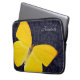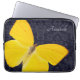 Borboleta amarela em uma bolsa de laptop preta de fundo de cor damasco. Personalize esta bolsa de laptop elegante com o seu nome.