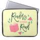 Perfeito para amantes de livros, esta capa de laptop apresenta as palavras "Leitores Vão Ler" cercadas por um livro aberto, rosas e folhas contra um fundo amarelo claro.