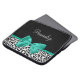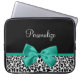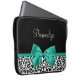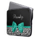 Personalize acrescentando o nome de qualquer menina feminina a essa trendy impressão de leopardo preto e branco 15'', bolsa de laptop neoprene com uma fita verde esmeralda feminina presa a um arco giro. Este design de impressão na moda é uma imagem impressa sem fita real.