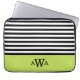 Padrão distribuído entre tendências, chic, giro, preto e branco com borda de bloco de cor de verde limão apresentando um modelo de monograma triplo para que você personalize facilmente com suas letras iniciais de primeiro, último e médio nome.