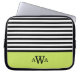 Padrão distribuído entre tendências, chic, giro, preto e branco com borda de bloco de cor de verde limão apresentando um modelo de monograma triplo para que você personalize facilmente com suas letras iniciais de primeiro, último e médio nome.