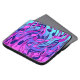 Belo padrão musical com notas cor-de-rosa brilhantes flutuando sobre uma abstrato de anotações de 8 e 16, com fundo de cor gradiente, cores de aqua, azul, roxo e rosa. Para músicos e amantes da música, amigos musicais ou familiares; adequados à maioria dos gêneros musicais, incluindo pop, K-Pop, jazz, swing, blues, dança latina, música contemporânea ou clássica. Você também pode obtê-lo em tamanho menor. Trabalho de arte de música original por Sylvia Chaume.