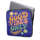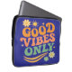 This design radiates positive energy with the phrase "Good Vibes Only" in a bold, retro font, accompanied by vibrant elements such as flowers, a radiant sun, and scattered stars. Its combination of warm and striking colors makes it a perfect piece for those looking to convey optimism and joy with their style. Ideal for those seeking a design about emotional well-being, motivation, self-expression, and alternative fashion, this design resonates with people who value a positive attitude and vintage aesthetic in their accessories and clothing. Its psychedelic, '70s-inspired feel makes it ideal for followers of bohemian fashion, modern hippies, and decor with a nostalgic touch. Available on products such as t-shirts, mugs, posters, and stickers, this design is an excellent choice for those looking to surround themselves with good energy and retro style. Its versatility makes it a unique gift for friends, family, and lovers of graphic art with a motivational message.