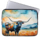 A majestic longhorn steer in a whimsical, abstract art style, blending complementary colors with fine details reminiscent of Arthur Rackham's and Paul Klee's signature techniques.