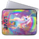 Linda pintura com um unicórnio branco, muito amor e um arco-íris colorido.