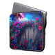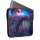 Esta bolsa de laptop tem uma lua e um violão pintados nela.