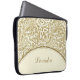 Adicione um toque de glamour ao seu guarda-roupa com este sofisticado ouro e Bolsa de laptop branco paisley damask Neoprene de 15 polegadas. Personalize este acessório de moda em branco chico e em formato paisley dourado adicionando seu nome.