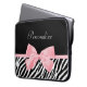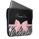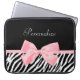 Obtenha seu fashionista sobre com este impressão animal do chique e do na moda a bolsa de laptop de 15 polegadas. Este acessório de forma tem um impressão preto e branco na moda da zebra e uma luz feminino macia - pique a fita amarrada em um arco feminino bonito. Personalize adicionando o nome de sua menina adolescente. Imagem impressa do plano, fita nao real. Direitos reservados originais da arte de ©OhSoGirly
