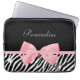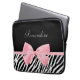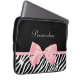 Obtenha seu fashionista sobre com este impressão animal do chique e do na moda a bolsa de laptop de 13 polegadas. Este acessório de forma tem um impressão preto e branco na moda da zebra e uma luz feminino macia - pique a fita amarrada em um arco feminino bonito. Personalize adicionando o nome de sua menina adolescente. Imagem impressa do plano, fita nao real. Direitos reservados originais da arte de ©OhSoGirly