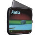 Um urso polar vagueia o gelo durante a longa noite polar; o Norte brilha em vermelho e verde à distância. A leitura de texto "Alaska" em azul e branco brilhantes também é exibida.