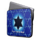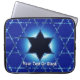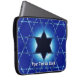 Uma simples imagem fractal, de tom azul, de múltiplas instâncias de um Magen David (Estrela de David) formada pela interseção de linhas de vidro ou cristal, a estrela central está cheia de azul escuro. Adicione seu próprio texto.