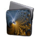 Uma incrível peça de arte fractal. A quantidade de detalhes é impressionante. miniaturas e espirais por toda a imagem. O fractal tem um brilho de ouro combinado com partes azuis mais escuras. O fractal é um zoom "original" do fractal de Mandelbrot, não foram feitos filtros ou processamento postado.