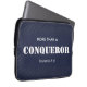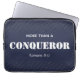 BOLSA DE LAPTOP CRISTÃ motivacional na moda com o lembrete de que o amor dos Cristos para nós nos faz mais do que conquistadores. O design mostra um fundo azul-da-meia-noite com 'CONQUEROR' em um padrão em azul de córnfo. O texto principal diz MAIS DO QUE UM CONQUEROR, que se baseia nos romanos 8:37. Um excelente presente para aniversários e Natal. Especialmente adequado para Dia de os pais ou como presente para encorajar e abençoar uma pessoa especial. O texto em primeiro plano é PERSONALIZÁVEL, portanto, você altera o texto' ou a referência de script pode ser substituída por um nome, se desejar. Parte da Coleção de DIAS DE OS PAIS em Designs Bereanos.