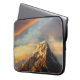 Este design apresenta uma imagem impressionante de um pico de montanha com capa de neve. A luz está a passar do sol de pôr e há uma tonalidade de ouro para as nuvens no céu, que pode ser vista como um símbolo de esperança.