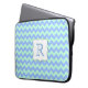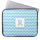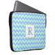 laptop de 15 pol. com na moda feito em um padrão chevron verde e azul da casa da moeda. Gráficos de uma placa decorativa de texto branco, enquadrada em verde-menta, no centro da caixa, tem um monograma azul de uma letra. Personalize a carta para você mesmo ou como uma ideia de presente de excelente.