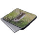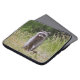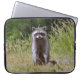 Um guaxinim fêmea novo obstrui o trajeto a seus bebês que bebem de The Creek atrás dela em um cinturão verde na baía do vidoeiro, Washington.