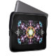 Mandala digital desenhada à mão com fumaça roxa e azul e centro de flores