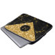Capa Para Notebook Mármore Preto e Design Geométrico Dourado com Larg