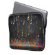 A imagem mostra uma exibição vibrante e colorida de várias notas musicais que parecem estar chovendo da escuridão acima para uma superfície refletiva abaixo. As notas são iluminadas em tons néon de amarelo, laranja, rosa, azul e verde sobre fundo preto. À medida que atingem a superfície abaixo, criam raios de luz dinâmicos que se assemelham a faíscas ou fogos de artifício. Essa peça de arte digital captura a essência da música como espetáculo visual e transmite o sentimento de energia e movimento associado ao ritmo e à melodia.