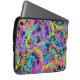Multi-colored bold rainbow swirls on a black background, resembling melted crayon shavings.