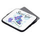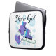 Nossos t-shirt do design da menina do patinador, as canecas, as bolsas, os cartões, os travesseiros, os pulsos de disparo de parede, as lembranças, os hoodies, e outros artigos de patinagem do tema caracterizam um par de skates do azul e da lavanda e mitenes em uma corda cercada por lotes de flocos de neve e do texto invernal que lê a menina do patinador!