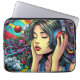 Capa Para Notebook Menina ouvindo música em Fones de ouvido Psicodéli