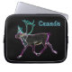 Uma renderização brilhante, semelhante a neon, de uma rena, também conhecida como rena. A leitura de texto "Canadá" também aparece em azul e branco brilhantes. Inspirado pelas luzes do Norte. Este design ganhou um prêmio do Melhor Dia.