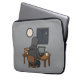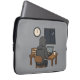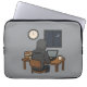 Laptop sleeve featuring a focused person working late at a desk, with books stacked nearby, a midnight clock, crescent moon window, and hot coffee. Includes space for a custom name, making it a perfect personalized gift for students, writers, or hardworking night owls.