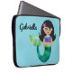 A sereia na moda do Latino da folha do falso personalizada caçoa a caixa do laptop. O fundo azul bonito gosta do oceano. A sereia pequena adorável com falso foil a cauda verde, a camisola de alças roxa e a estrela do mar roxa e cor-de-rosa em seu cabelo preto escuro. Personalize com nome no roteiro bonito. Edite para mudar escolhas da pia batismal. Sereia, merman, e artigos do pirata e fontes de coordenação do partido. Contato para pedidos da ordem feita sob encomenda. Sereia, oceano, design temático da vida marinha. ww.SamAnnDesigns.com
