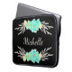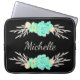 Bolsa de laptop com um monograma personalizado e flores de cor e prata