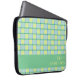 A modern checker laptop sleeve in fresh blue, green and lime, with a green color block along the bottom to customize with your name, or add a loved one’s name and make it a personalized gift. Tuck your laptop inside and carry it with style to class, office or your favorite cafe. The protective build and stylish cover make it both practical and pretty. Thanks for viewing an Eria Daisy Art design!